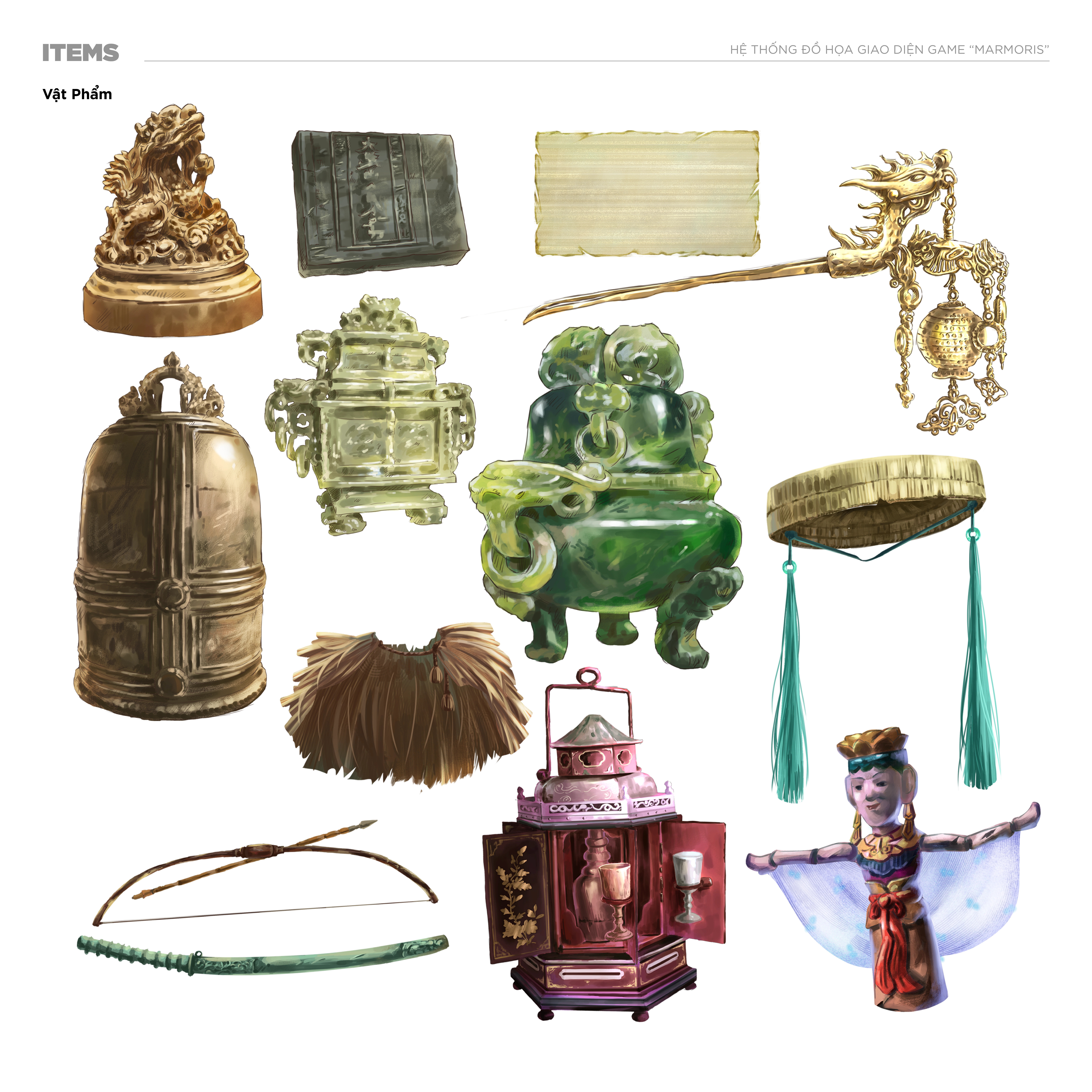 Giao diện game "Marmoris - Ẩn tích còn sót lại" về nền văn hóa Đại Việt giúp Nhật Khang trở thành á khoa đồ án tốt nghiệp ngành Thiết kế đồ họa, Đại học Văn Lang.