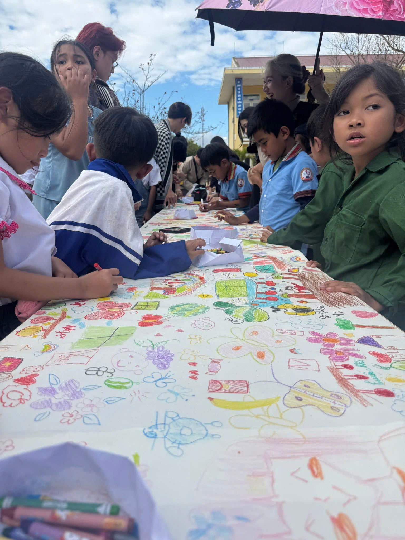 Đối với sinh viên Văn Lang, đây là cơ hội để vận dụng kiến thức, rèn luyện kỹ năng tổ chức và nhận thức sâu sắc hơn vai trò của nghệ thuật trong đời sống cộng đồng. Hoạt động không chỉ mang lại niềm vui cho trẻ em vùng cao mà còn góp phần tăng cường sự gắn kết giữa nhà trường và xã hội.